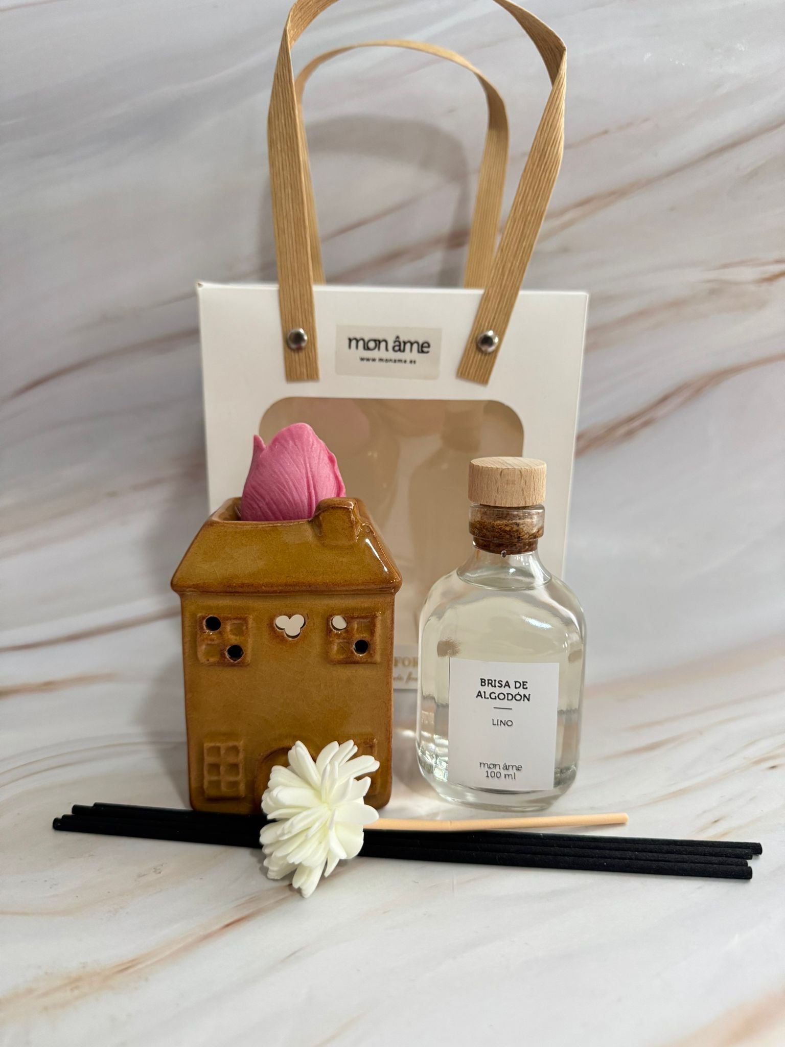 Este kit incluye tres piezas esenciales para crear un ambiente aromático completo, ideal para regalar o darte un mimo.