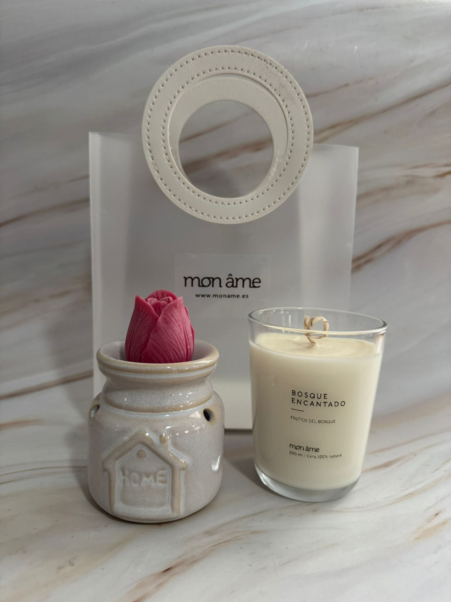 Este kit combina la calidez de una vela con el poder transformador de los aromas, todo en una presentación impecable que enamora a primera vista.